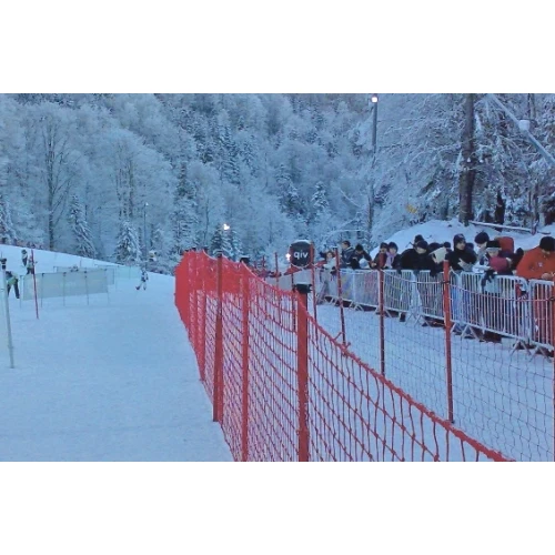 Avsperringsnett B-C, 15x1,3m 5x5cm maskevidde Rød ferdig montert med 9st staur