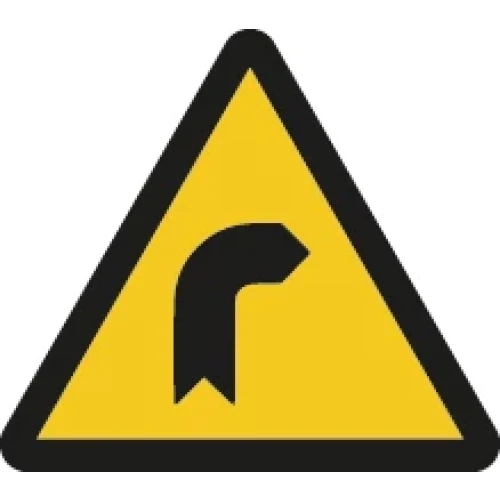 Skilt, "Farlig sving høyre" 3-kant 60cm sort/gul