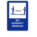 Skilt, rektangulært "2m avstand - bånd" 50x70cm