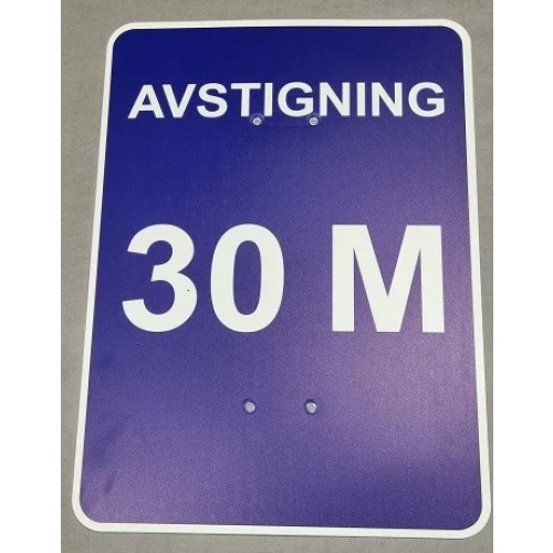 Skilt, rektangulært "avstigning 30meter" 50x70cm